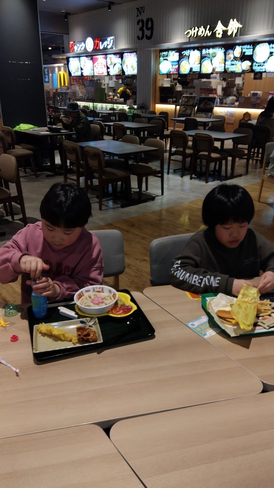 イオンタウンのフードコートでみんな好きな物を食べてきました(´~`)モグモグ