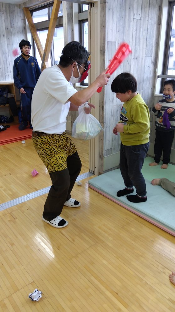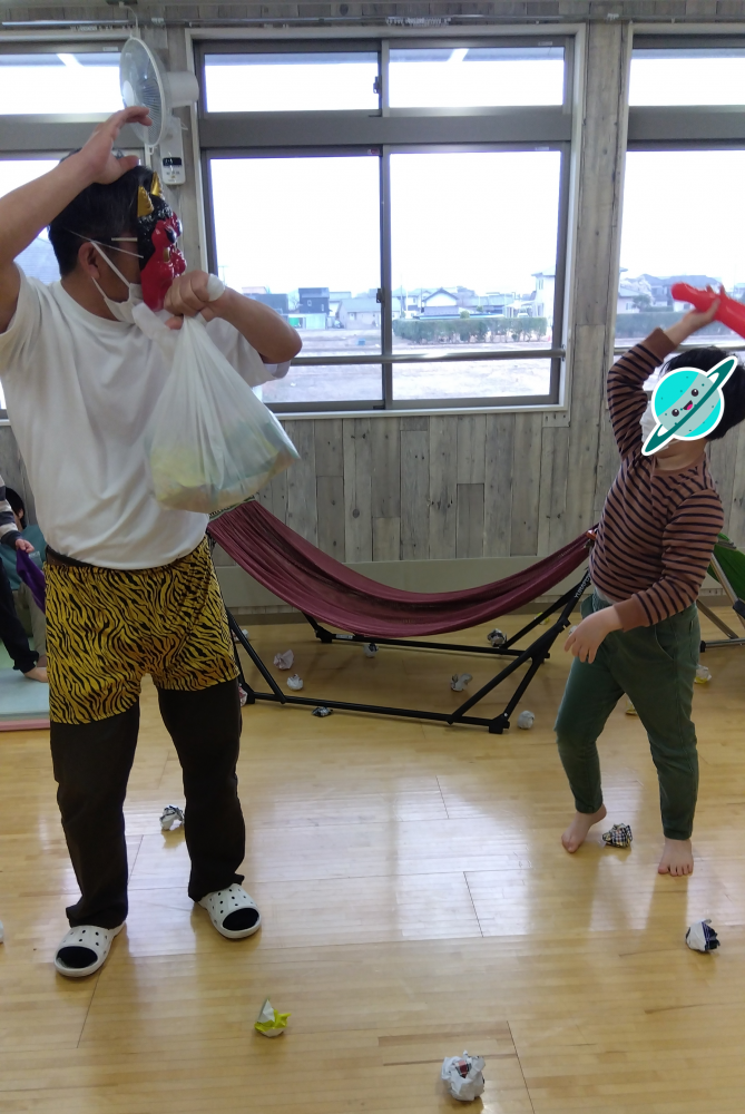 大きな赤鬼が来たのですが、みんな一丸となってやっつけました😤