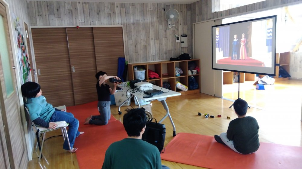 みんなでお弁当を食べて、ミニシアターの上映会(^^♪(シュレック2を観ました)