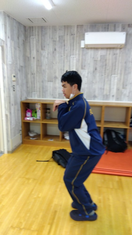 何だかホッコリな後ろ姿........(^^♪ 新しいスタイルのスクワット?!なのか?!