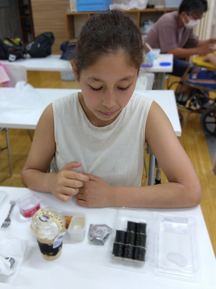 ある日のお昼ごはん、みんなでヤオコーに行って好きな物を買ってきました。