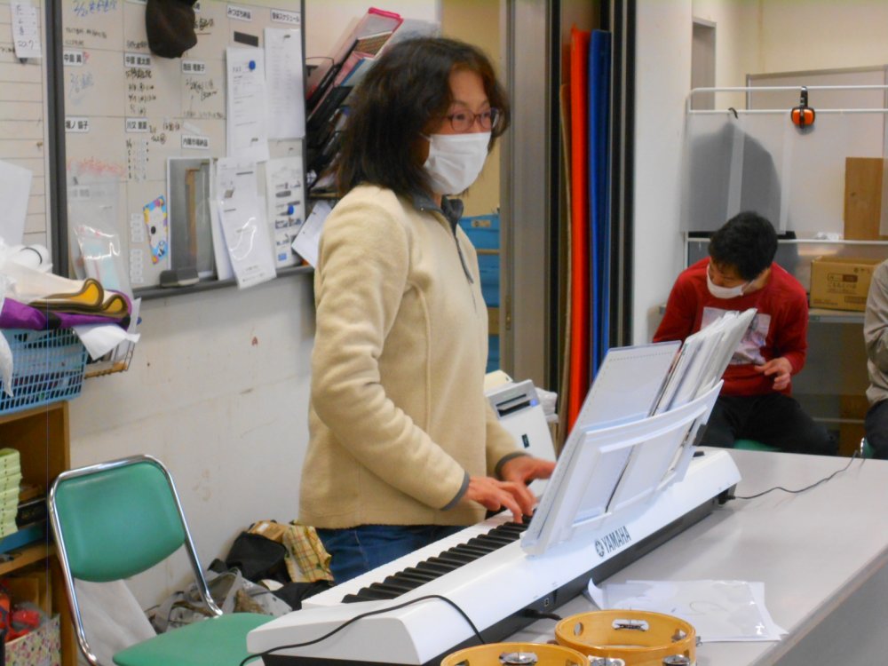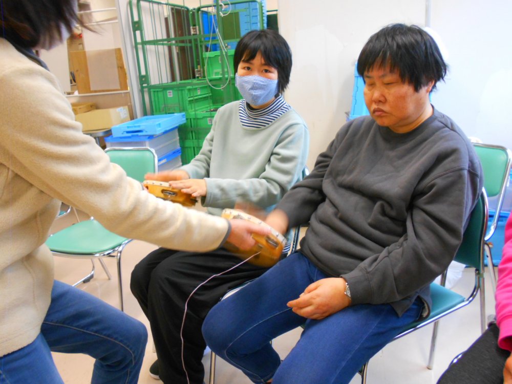 音楽療法では日常を取り戻し、新たな楽器、新たな曲を模索しています