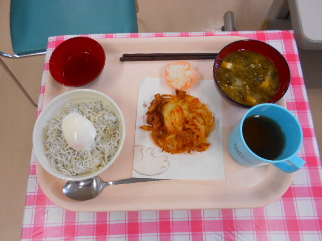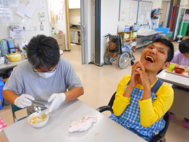 今月お誕生日の仲間はイベントが大好きなのですが、去年、今年と外出イベントが全く行われなかったため、「旅行に行き外食した気分を調理実習で」テーマに、江の島定食(しらす丼、サクラエビのかき揚げ、あおさ汁、バナナサンデー)をつくりました(^_^)v