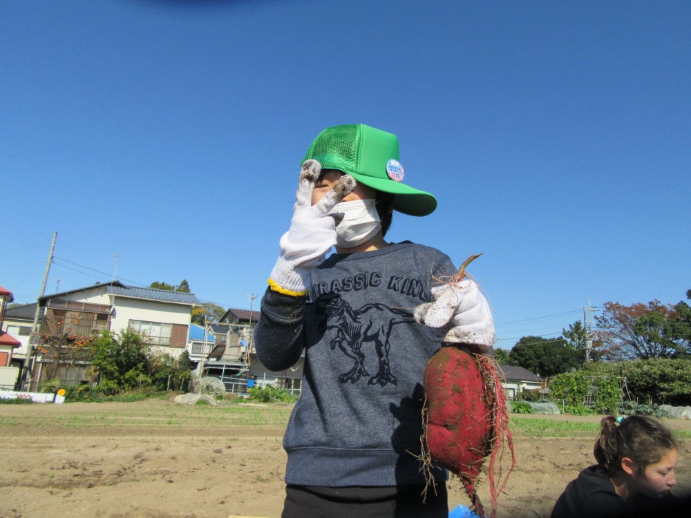 初めてさつまいも掘りを体験した子も楽しそうに掘っていて、自分で収穫したさつまいもを嬉しそうに見せてくれました。