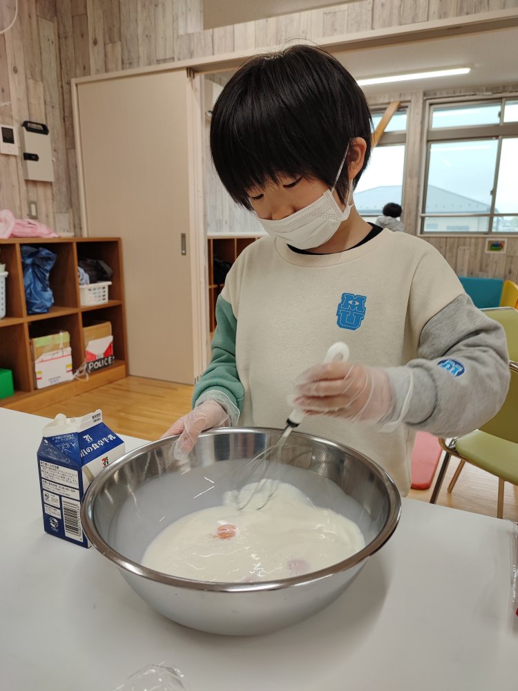 何の活動をするか話し合い、ホットケーキを作りました!!