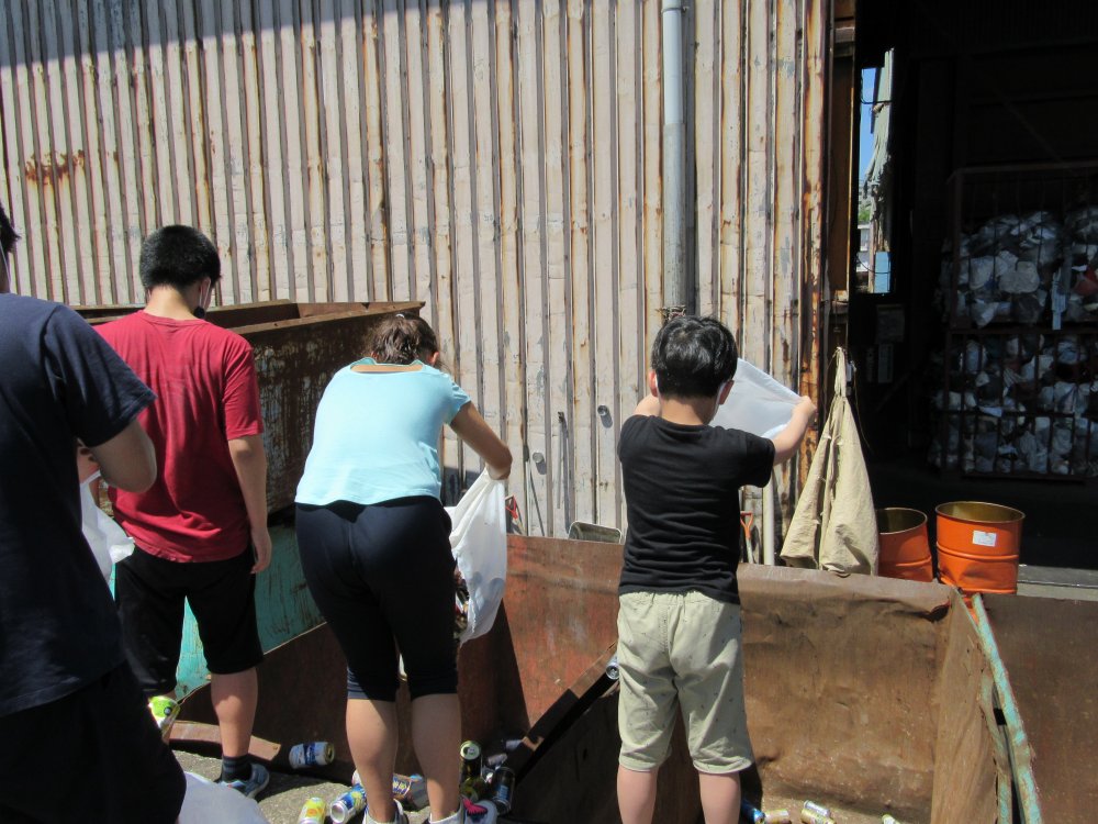 ある日の活動。お仕事体験としてアルミ缶(資源)を卸業者さんに納品に行きました(`・ω・´)