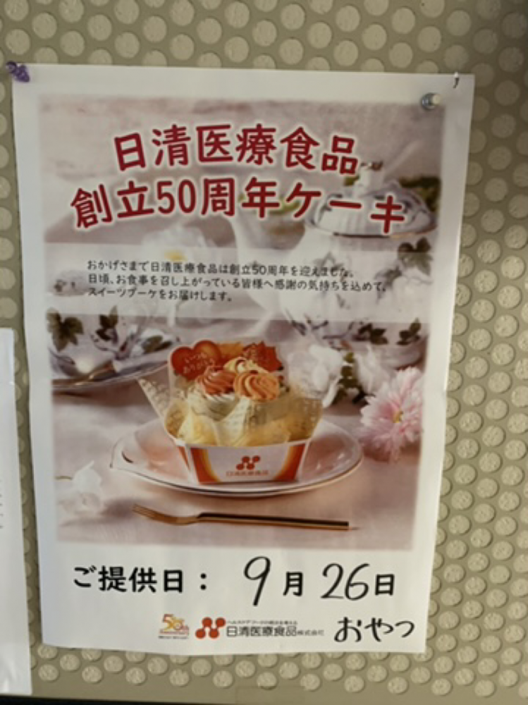 ということで、おやつに創立50周年ケーキがでました!(^^)!