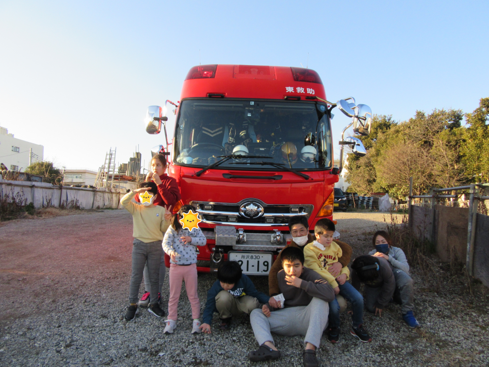 そして訓練が終わってからは、大好きな消防車の前でハイポーズ(*^^)v