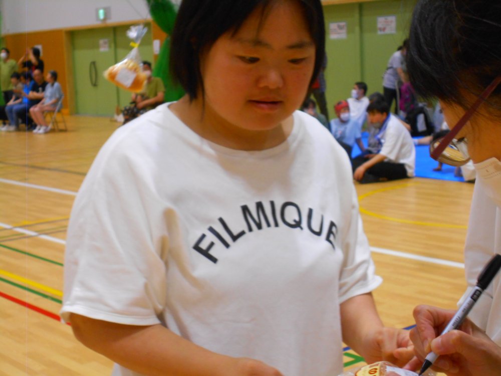 みなさん希望のパンを獲得、名前を書いてもらって大満足☺