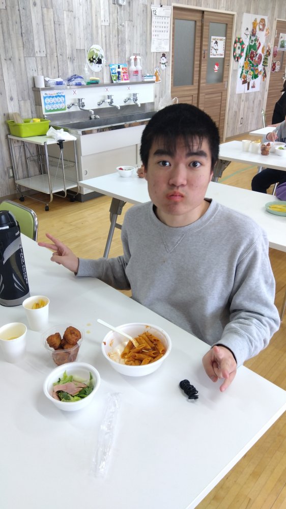 ご飯、ハンバーグ2個、ミネストローネ、トマトサラダ。