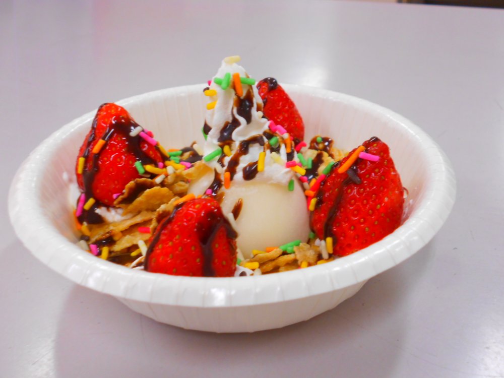 真ん中に雪見大福を乗せたパフェをいただきました。( *´艸`)