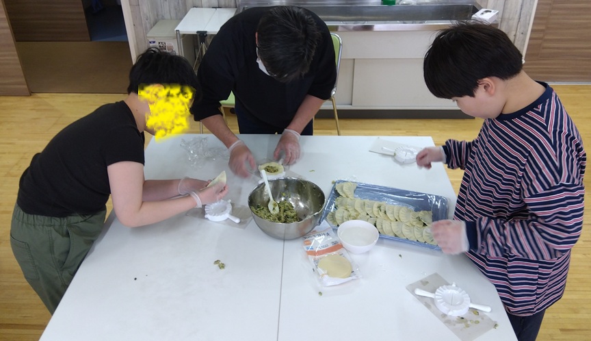 100円ショップで餃子を包む道具を購入し、みんなでせっせと包むこと120個。。
