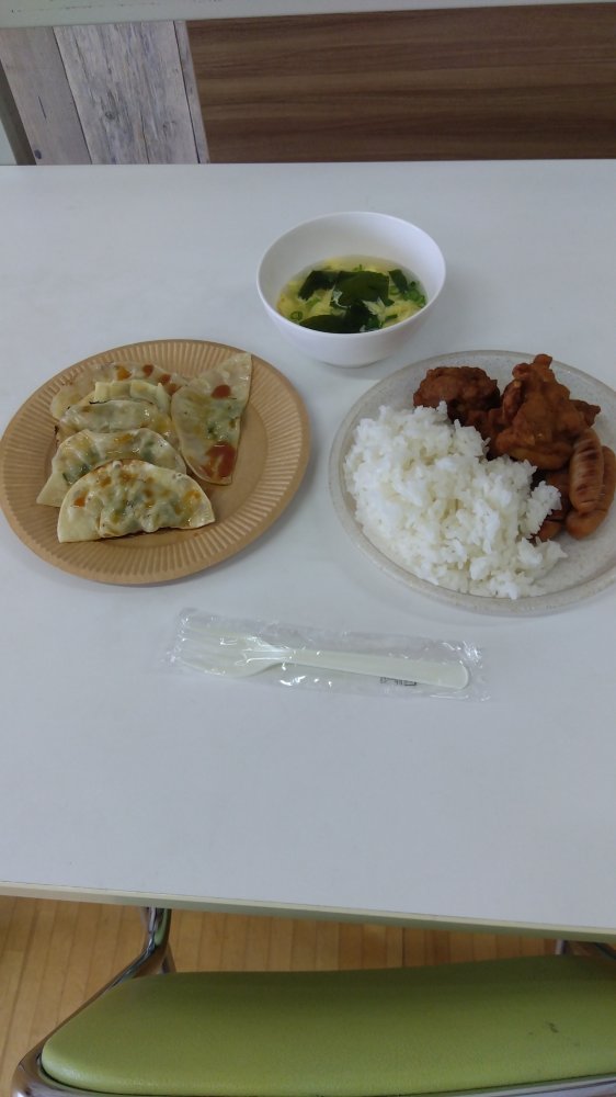 メニューは餃子🥟とわかめスープ🥬です(≧▽≦)