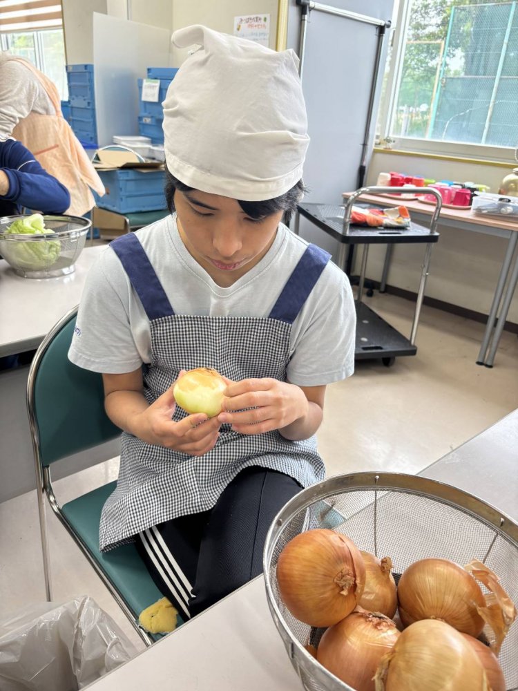 4月23日の調理実習のメニューは、ロコモコ丼・コンソメスープ・フライドポテト・ジュースでした。